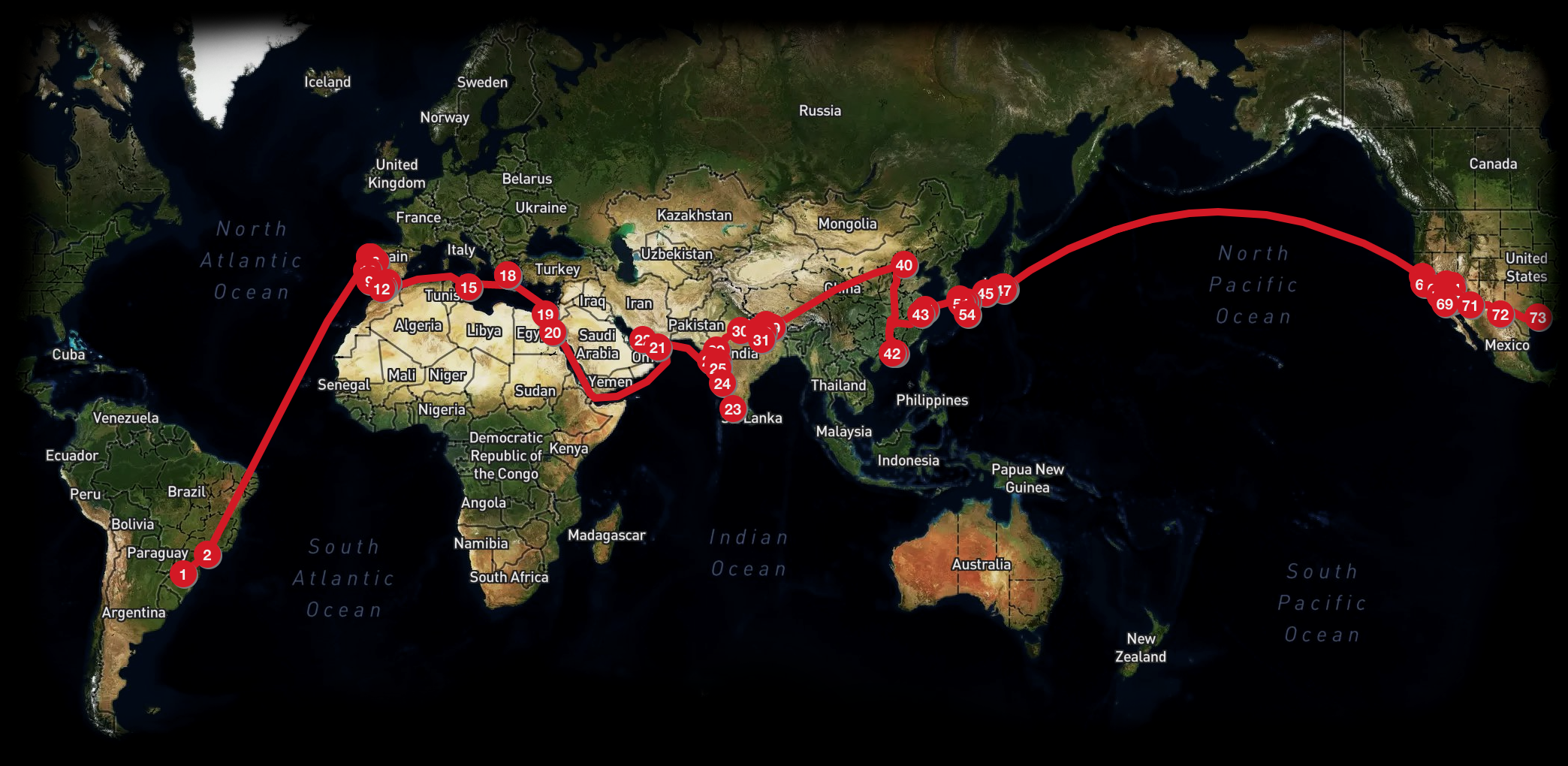 A primeira etapa da viagem serão 26 dias no mar até Cochin, na Índia, seguindo a mesma rota daquela que se supõe a primeira viagem a disseminar a paramiloidose familiar.